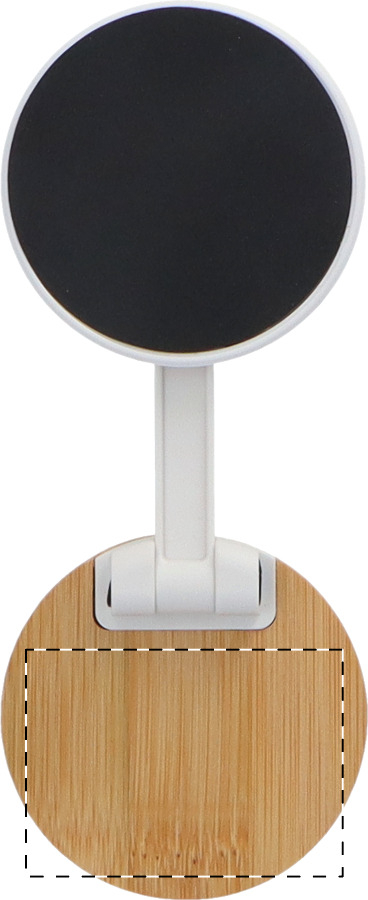 Bílý magnetický držák na mobilní telefon vkusně kombinuje přírodní bambus a odolný recyklovaný plast ABS. Na pracovním stole působí velmi elegantně a udržuje telefon v ideálním úhlu pro sledování videí, videohovory nebo rychlou kontrolu notifikací.