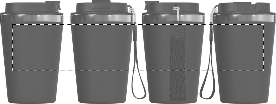 Využívá víčko pro přímé pití a praktický řemínek pro snadné uchopení. Celkový objem 350 ml vyhovuje standardní porci nápoje z kávovaru.