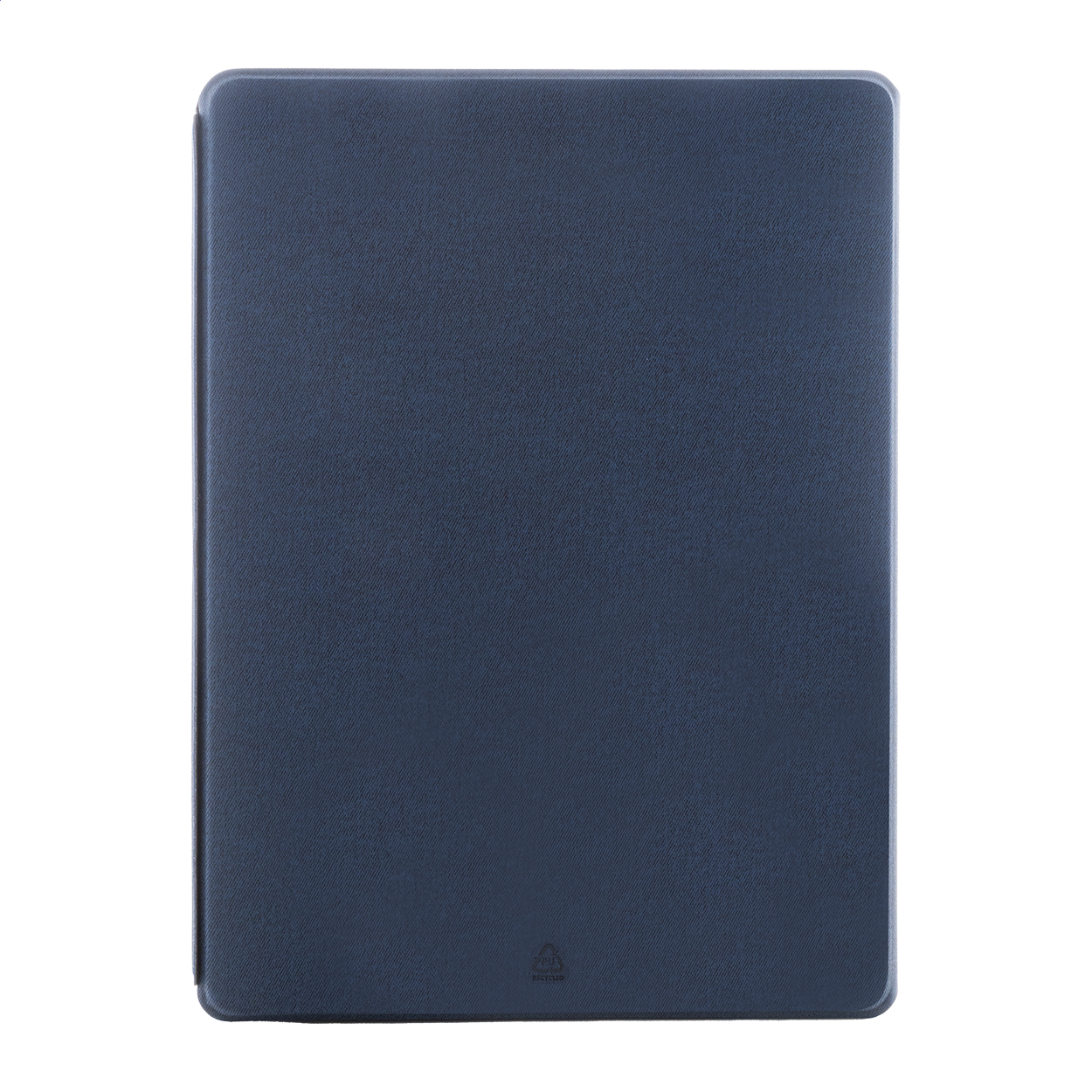 SlohaA4 na dokumenty z recyklované PU kůže s vnitřními kapsami na organizér a magnetickým zavíráním. S 20 linkovanými listy poznámkového bloku z recyklovaného papíru.