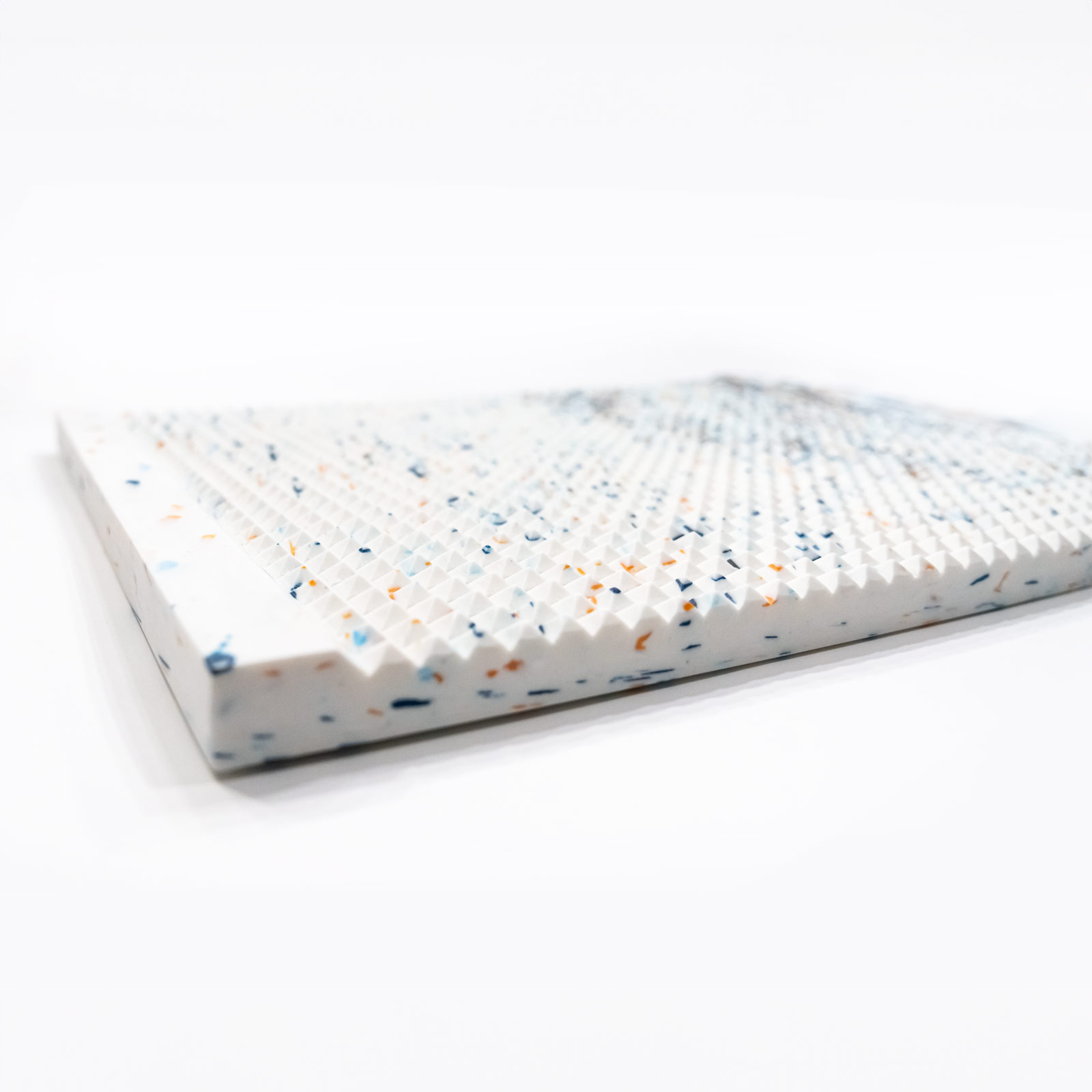Podložka je vyrobena z recyklovaného plastu (např. z víček od lahví, kelímků od jogurtu či jiného plastového odpadu), může být použit vytřídený jednodruhový odpadaní plast klienta (nejlépe HDPE nebo PP).