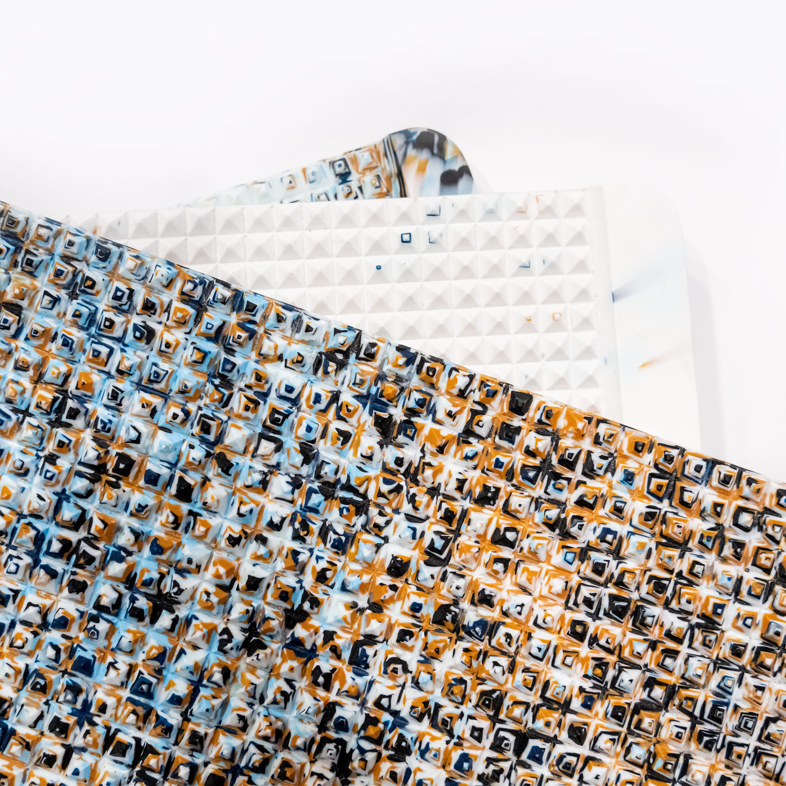 Každý kus je originál. Technologie výroby neumožňuje dodržet stejný design. Barevnost je možné přizpůsobit, nicméně rozložení a hustota samotných barev se může lišit.