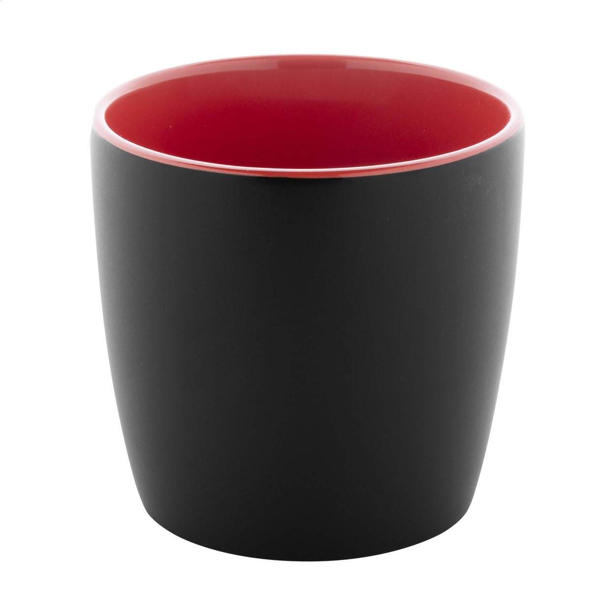 Vysoce kvalitní keramický hrnek s matnou černou vnější a lesklou vnitřní povrchovou úpravou, 300 ml. V kraftové papírové krabičce.