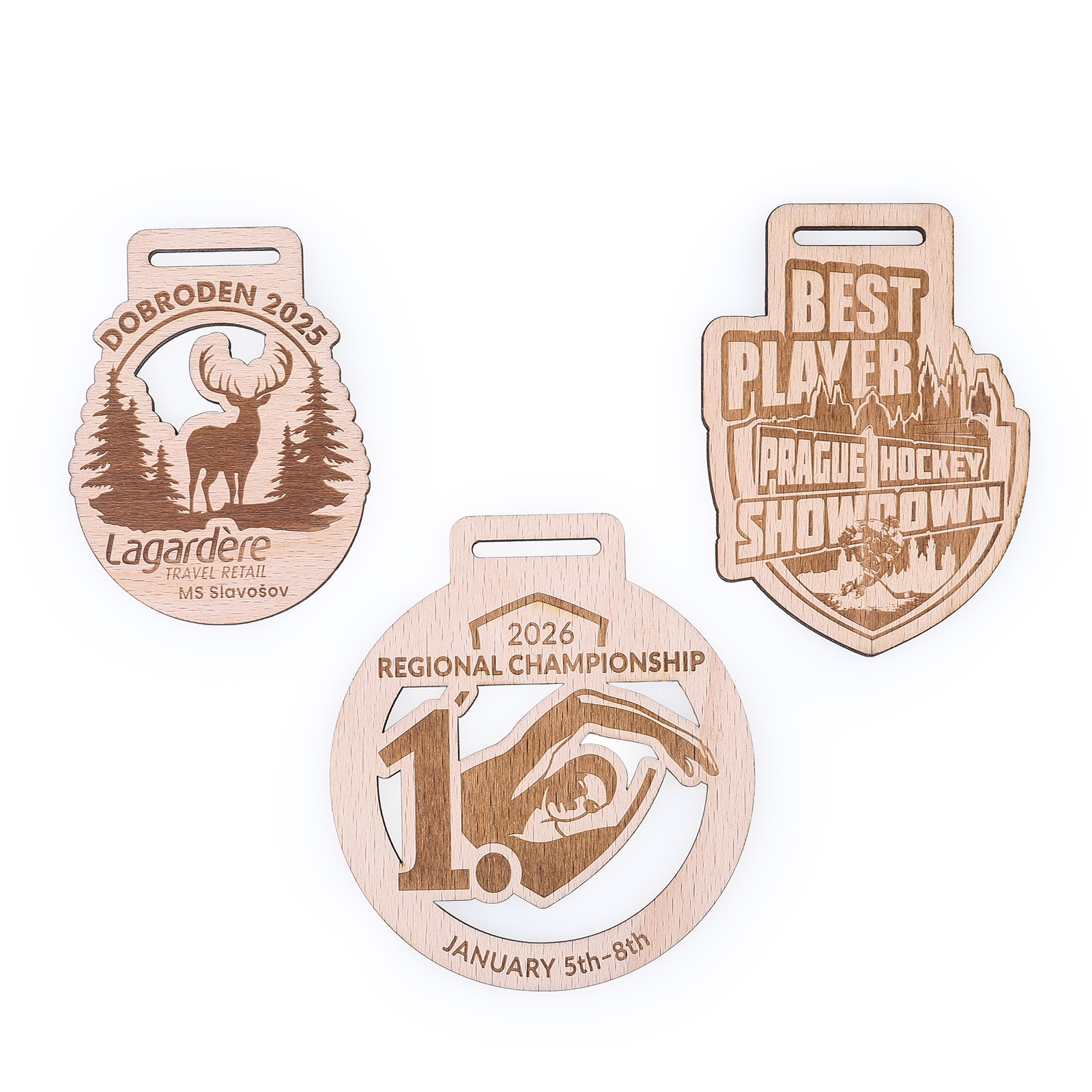 Když chcete ocenit srdcem, sáhněte po medaili ze dřeva. Přírodní dřevěná medaile je stylové, moderní a ekologické ocenění, které si účastníci vaší akce uchovají jako cennou vzpomínku. Zaujme originalitou, decentním vzhledem i hřejivým příběhem materiálu. Ekologicky a s respektem k přírodě: Na rozdíl od kovových nebo plastových alternativ jsou dřevěné medaile vyráběny z obnovitelného materiálu. Výroba probíhá šetrně a s důrazem na minimální odpad, čímž aktivně přispívá k naplňování cílů udržitelného rozvoje. Poctivé řemeslo z kvalitního dřeva: Každý kus je vyřezán z pečlivě vybrané dřevěné překližky, která vyniká pevností, přirozenou kresbou a příjemnou haptikou. Průměr do 90 mm zajišťuje ideální plochu pro vlastní design. Lehké, a přesto výjimečné: Díky své nízké hmotnosti se medaile pohodlně nosí, a přitom působí reprezentativně. Ideální pro jakékoliv závody, sportovní turnaje, komunitní akce i teambuildingy. Personalizace bez kompromisů: Gravírování či výřez vlastního loga, textu nebo motivu je v ceně. Každou medaili vyrábíme jako originál přesně podle vašich představ s důrazem na detail, kreativitu a smysl pro estetiku. Česká výroba s duší: Medaile vznikají kompletně v České republice. Podporujete tak domácí výrobu, tradiční řemesla a lokální udržitelné podnikání. Dřevěná medaile je důkazem, že i malé ocenění může mít velký význam, ekologicky, originálně a s přesahem.
