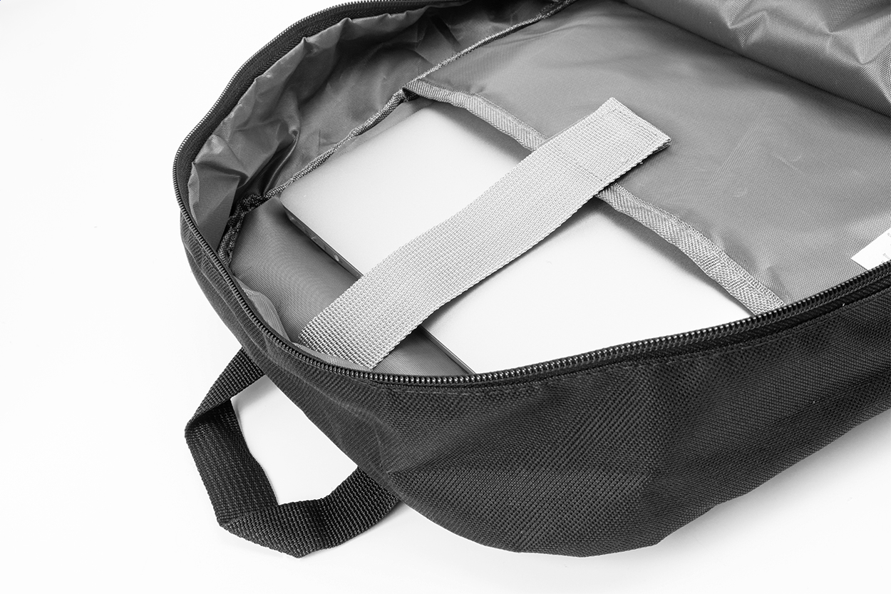 Batoh RPET s hlavním oddílem na zip, 2 předními kapsami na zip, bočními kapsami a polstrovanou přihrádkou na notebook (15"). S polstrovanými zády a ramenními popruhy. Polyester 600D RPET, s výrazným štítkem RPET.