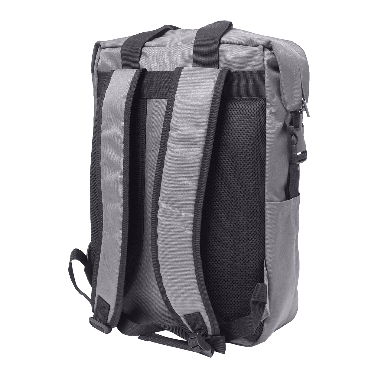 Batoh RPET s hlavní přihrádkou na zip a přední kapsou, polstrovanou přihrádkou na notebook (15") a tablet (10"), bočními popruhy a kapsami na přezky, polstrovaná záda a ramenní popruhy. 600D RPET polyester s výrazným štítkem RPET.