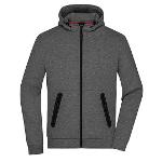 Pánská mikina vyrobená z hladkého strečového a rychleschnoucího materiálu, takže je ideální pro sport a pohybové aktivity. Mikina má rovný střih s bočními díly, celopropínací reverzní spirálový zip, raglánové rukávy a kapuci s krytkou brady. Vnitřní průkrčník je začištěný páskou. Kapsy na zip a lemování elastickým proužkem. Zadní díl je tvarovaný a mírně prodloužený. Kontrastní prvky (kromě černé barvy). Etiketa je v podobě odnímatelné nálepky pro snadný rebranding.