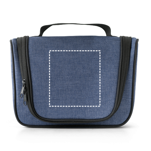 Kosmetická taška z 600D s vysokou hustotou. Hlavní přihrádka má dvoustranný zip a podšívku z 210D. Obsahuje pár vnitřních kapes a háček na zavěšení v horní části