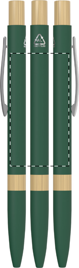 Zelené kuličkové pero z recyklovaného hliníku představuje vkusné spojení ekologických materiálů a funkčního designu s bambusovými doplňky. Sametově hebký pogumovaný povrch zaručuje stabilitu v ruce a příjemný dotek.
