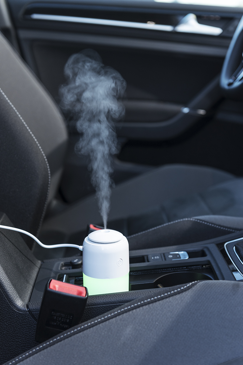 Plastový stolní zvlhčovač vzduchu s vícebarevným LED světlem. Včetně USB kabelu. Objem 200 ml.