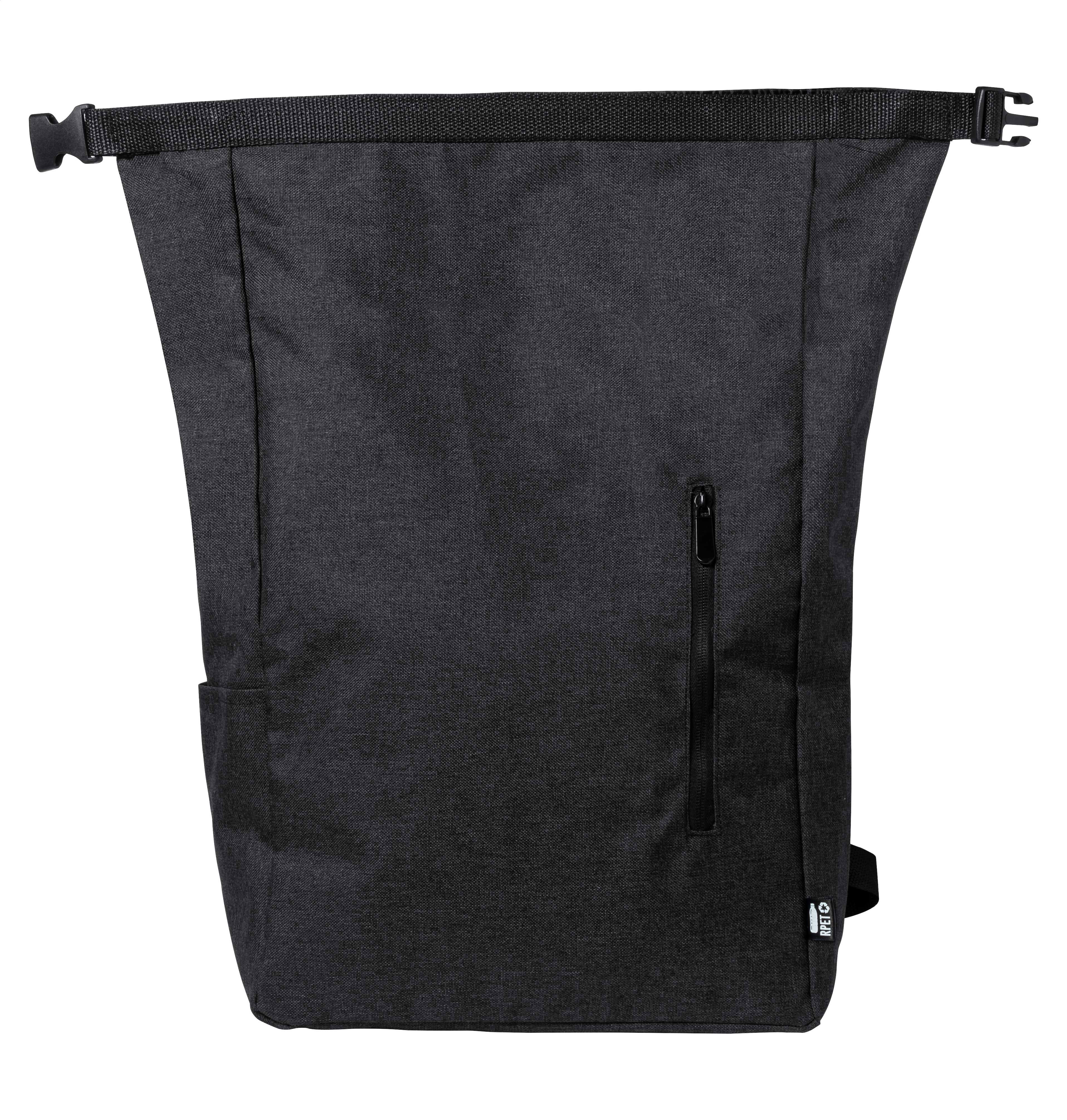 Vodotěsný rolovací batoh z RPET s boční kapsou, přední kapsou na zip, polstrovanými zády a ramenními popruhy. S výrazným štítkem RPET. Polyester 300D RPET.