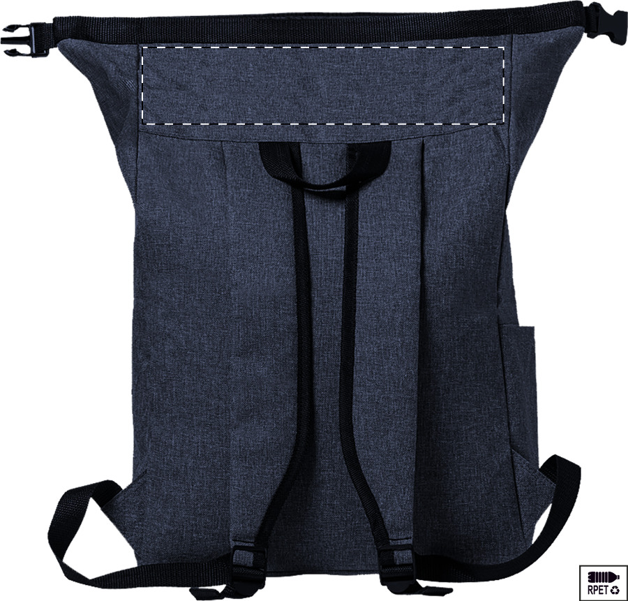 Vodotěsný rolovací batoh z RPET s boční kapsou, přední kapsou na zip, polstrovanými zády a ramenními popruhy. S výrazným štítkem RPET. Polyester 300D RPET.