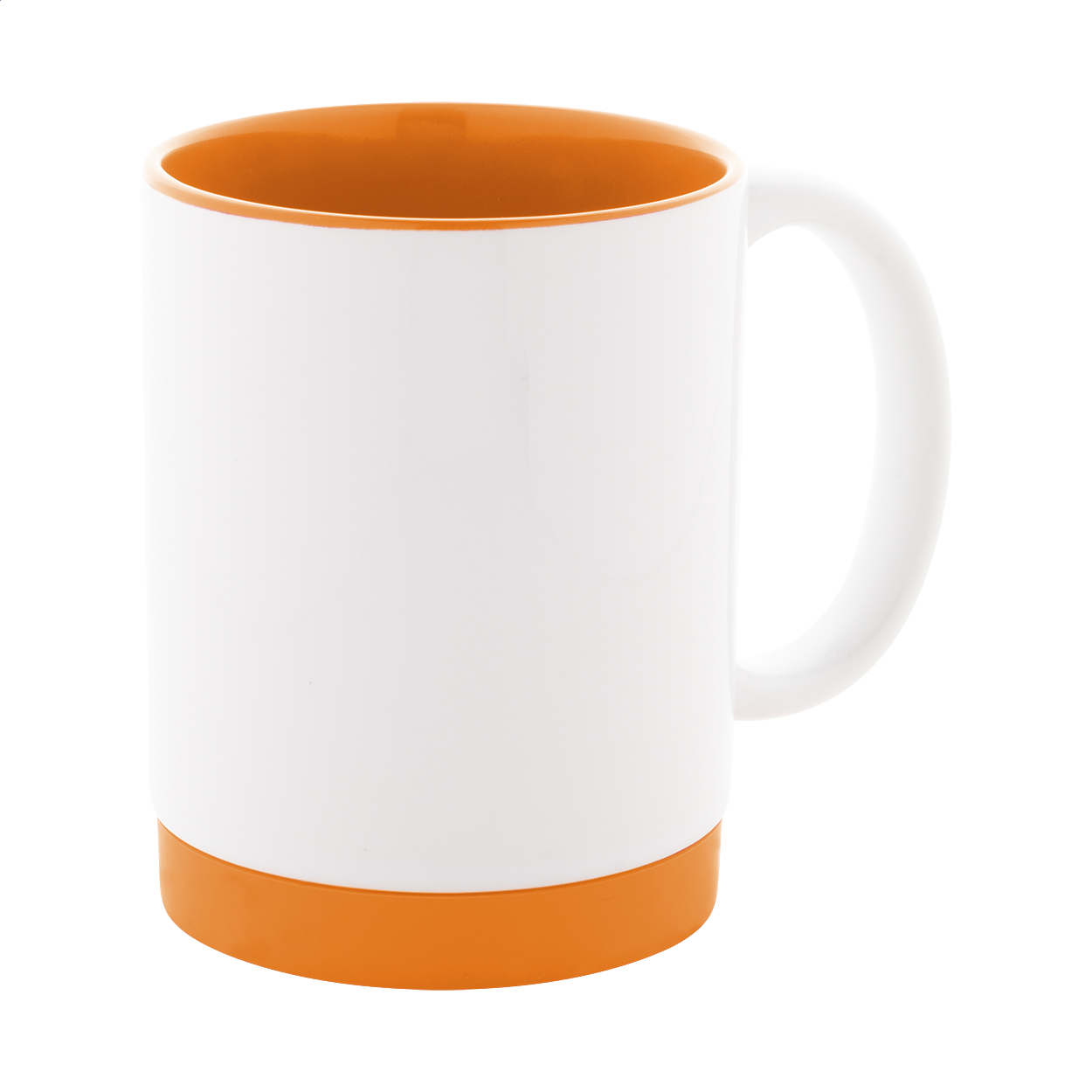 Keramický hrnek na sublimaci s barevným vnitřkem a silikonovým kroužkem v odpovídající barvě, 300 ml. V bílé papírové krabici.