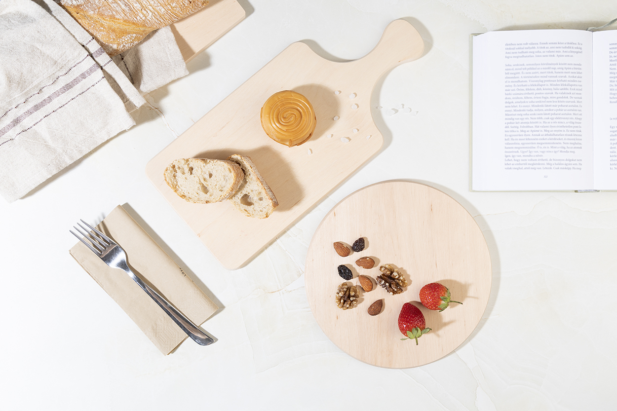 Prkénko na krájení s rukojetí vyrobenou z jednoho kusu přírodního olšového dřeva. 100% přírodní a zcela bez lepidla.