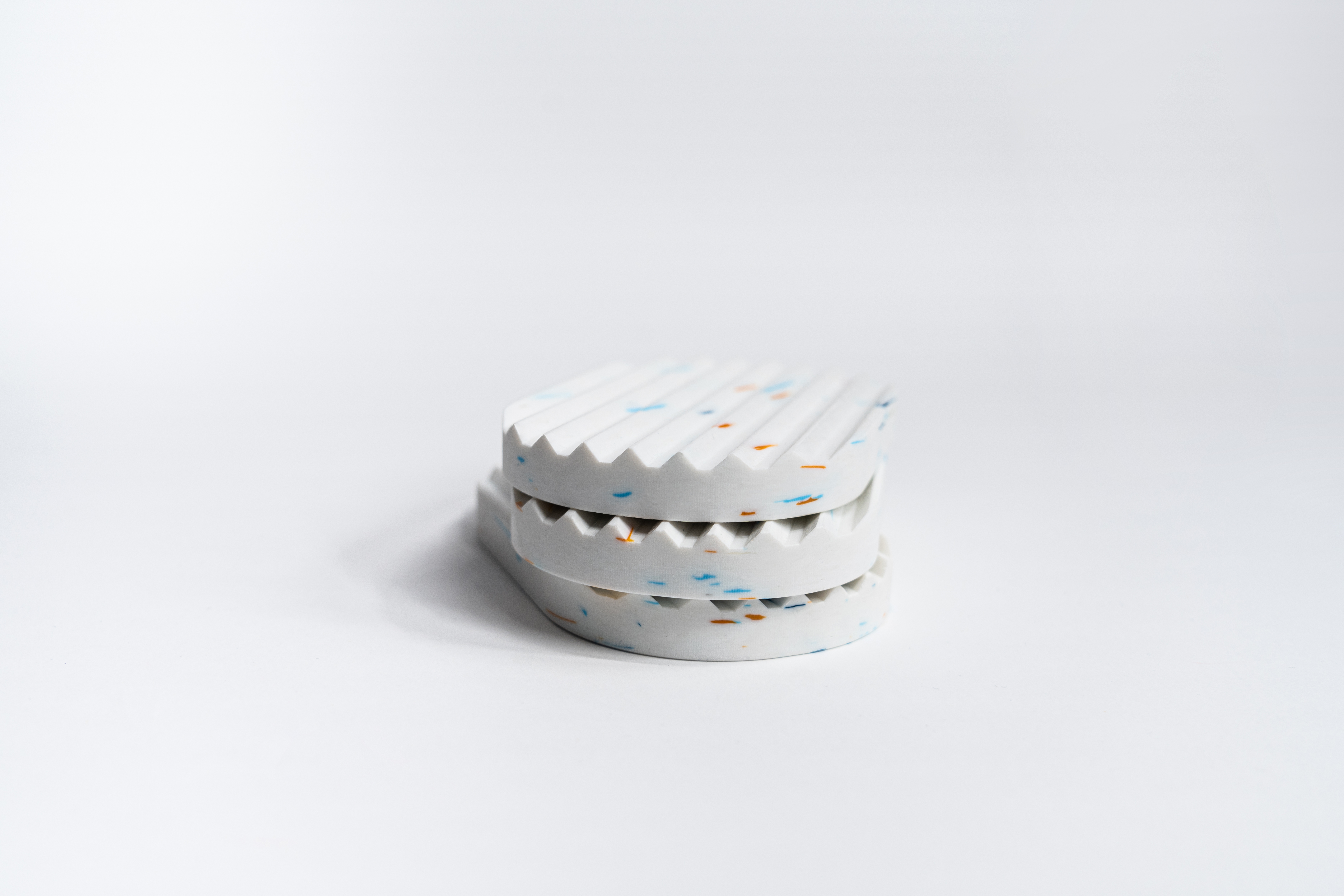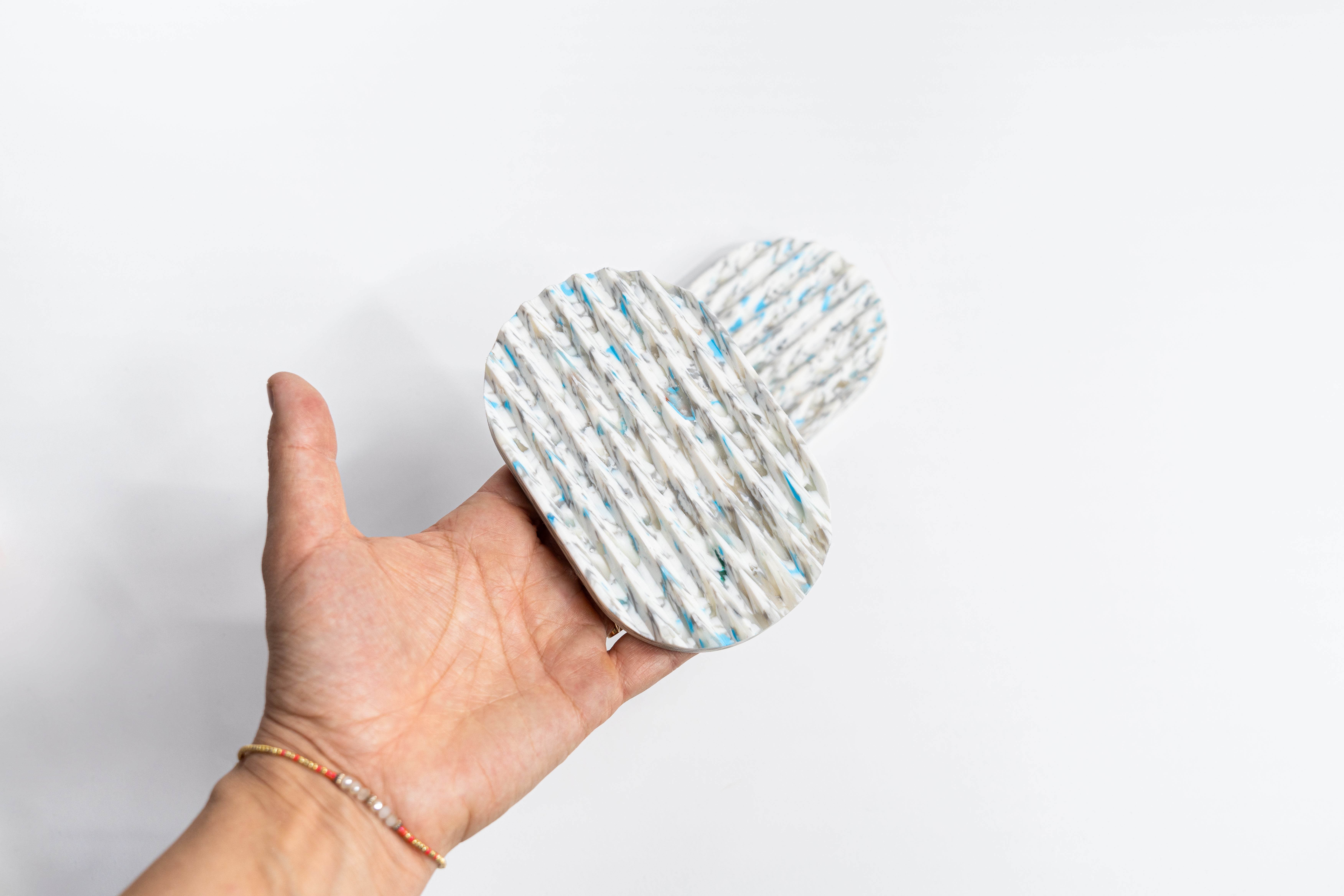 Mýdlenka je vyrobena z recyklovaného plastu (např. z víček od lahví, kelímků od jogurtu či jiného plastového odpadu), může být použit vytřídený jednodruhový odpadaní plast klienta (nejlépe HDPE nebo PP).