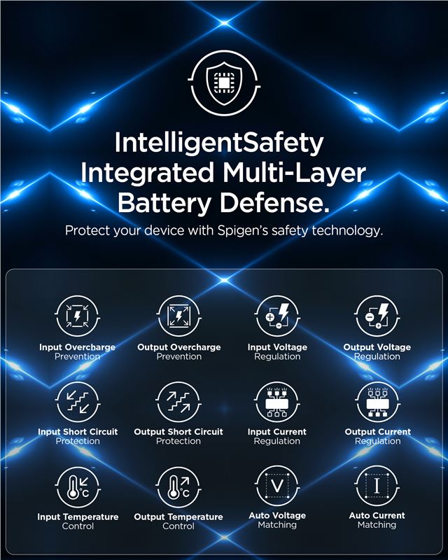 Chrání mobilní telefon před rizikem přepětí a přebití pomocí integrovaného 15bodového bezpečnostního systému. Odolný PC materiál pláště odolává mechanickému poškození a široká kompatibilita umožňuje napájet různé typy elektroniky s podporou USB-C napájení.