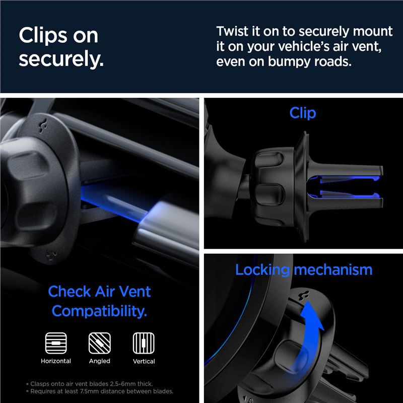 Bezdrátová nabíječka do větrací mřížky vozu využívá technologii OneTap pro okamžité a stabilní uchycení iPhonu s MagSafe. Integrovaný magnet N52 s vysokou silou udrží telefon bezpečně na místě i na nerovných cestách, přičemž štíhlý design nebrání proudění vzduchu z ventilace.
