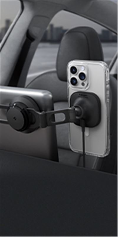 Magnetický držák s bezdrátovým nabíjením se upevňuje přímo na obrazovku vozů Tesla a zajišťuje pevné spojení s iPhonem vybaveným technologií MagSafe. Kovové rameno s dvojitým kloubem dovoluje libovolné nastavení úhlu nebo úplné skrytí za displej, aby nebránilo ve výhledu.