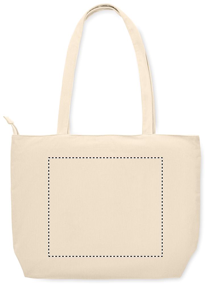Velká nákupní/plážová taška z polyesterového manšestru se zapínáním na horní zip, otevřenou přední kapsou a vnitřní kapsou. 220 g/m².