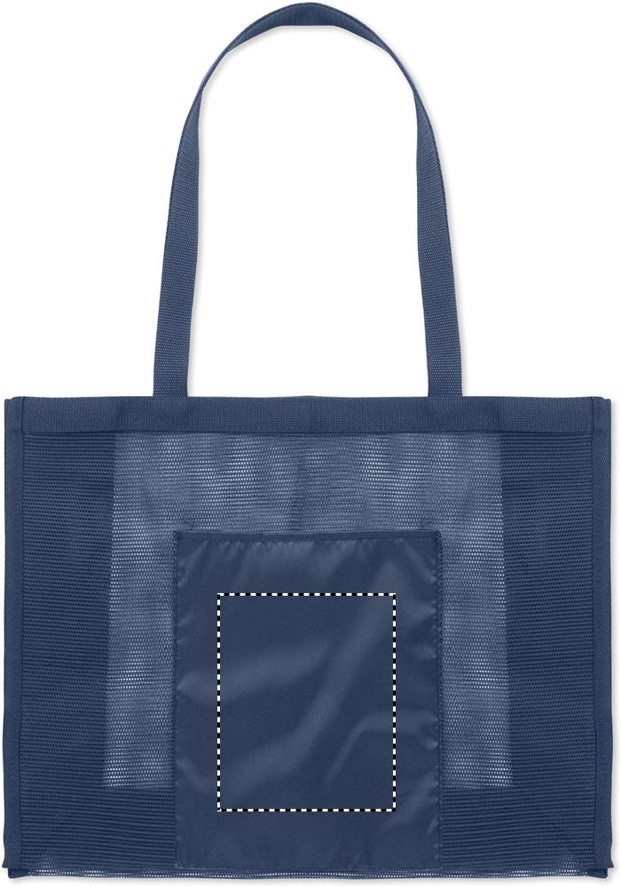Nákupní taška vyrobená z RPET síťoviny s krátkými uchy z 210D RPET. Velká otevřená přední kapsa. Objem 20 l, nosnost až 10 kg.
