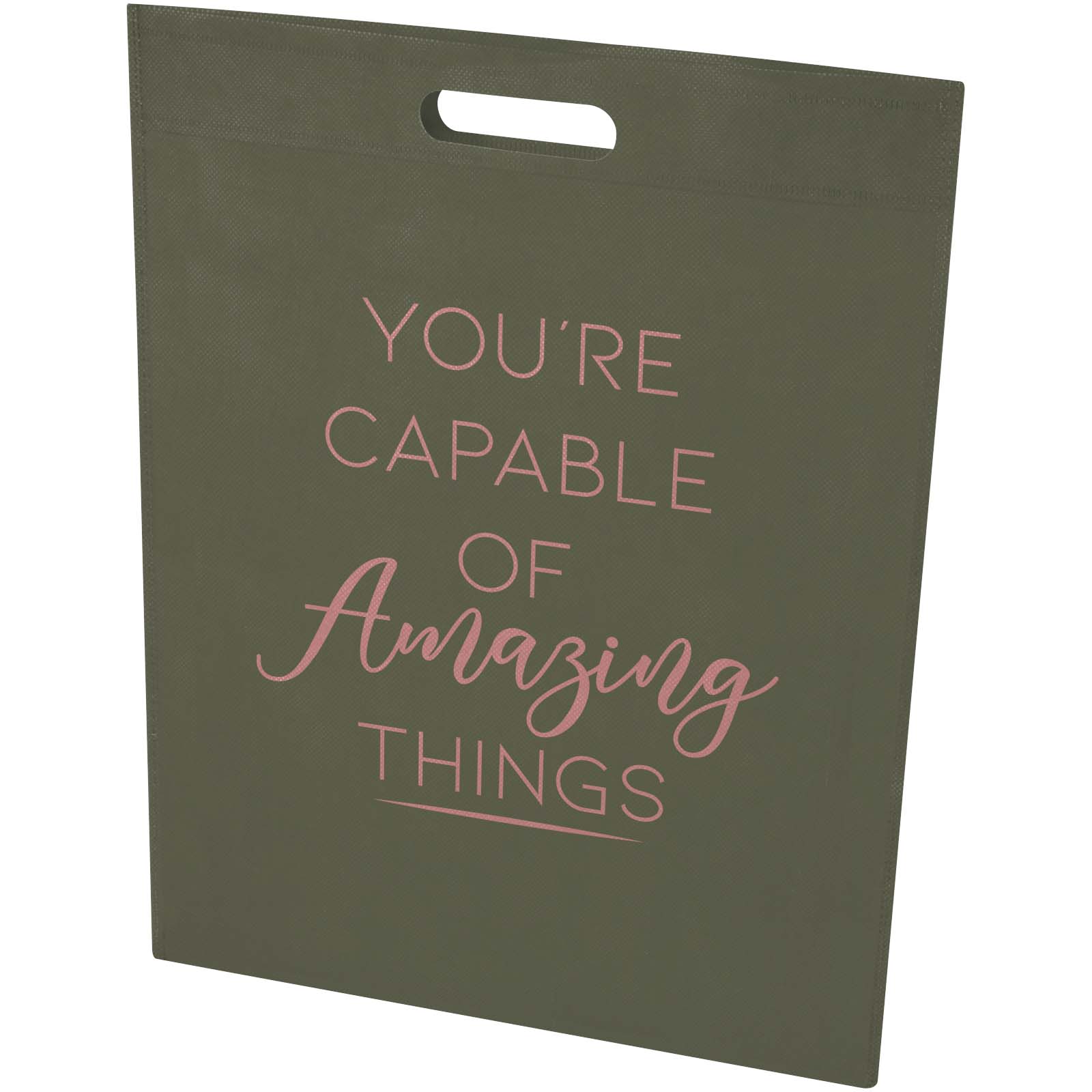 Taška EcoSeal z recyklovaného materiálu RPET s certifikací GRS je vyrobena z odolného a proti roztržení odolného RPET a má ultrazvukově tepelně svařenou konstrukci a vyřezávané rukojeti. Je bez stehů, lehká a přitom pevná. Ideální pro každodenní nezbytnosti, události nebo rychlé pochůzky. Nosnost do 3 kg. Objemová kapacita: 5 litrů.