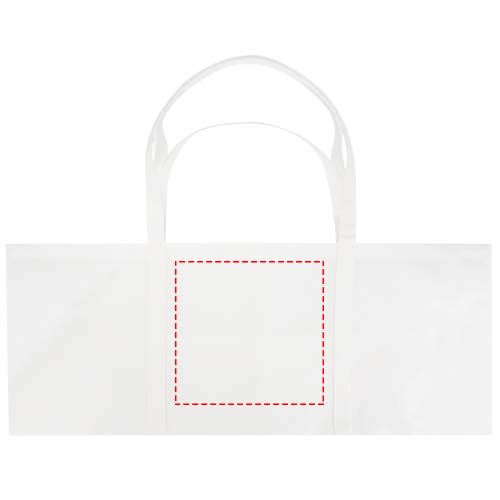 Recyklovaná taška Jumbo s certifikací GRS z odolného recyklovaného netkaného RPET nabízí extra velkou kapacitu až 65 litrů pro různé aktivity, např. velký nákup potravin nebo den na pláži nebo v parku. Má vyztužená krátká (24 cm) a dlouhá ucha (37 cm) pro maximální pohodlí při nošení. Snadno se složí a uloží, pokud ji nepoužíváte. Nosnost do 15 kg.