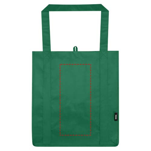 Recyklovaná nákupní taška Liberty s certifikací GRS vyrobená z odolného netkaného RPET má podpůrnou spodní desku, díky níž je univerzální a pevná. Nákupní taška má velkou hlavní přihrádku a ucha o délce 25 cm. Objemová kapacita: 29 litrů. Nosnost do 12 kg.