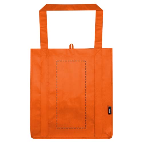 Recyklovaná nákupní taška Liberty s certifikací GRS vyrobená z odolného netkaného RPET má podpůrnou spodní desku, díky níž je univerzální a pevná. Nákupní taška má velkou hlavní přihrádku a ucha o délce 25 cm. Objemová kapacita: 29 litrů. Nosnost do 12 kg.