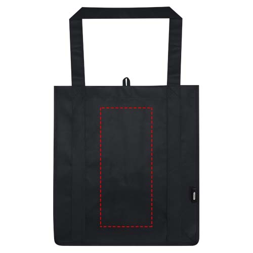 Recyklovaná nákupní taška Liberty s certifikací GRS vyrobená z odolného netkaného RPET má podpůrnou spodní desku, díky níž je univerzální a pevná. Nákupní taška má velkou hlavní přihrádku a ucha o délce 25 cm. Objemová kapacita: 29 litrů. Nosnost do 12 kg.