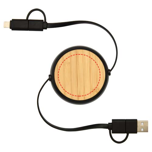 Navíjecí datový a rychlonabíjecí kabel 5v1 z recyklovaného plastu s bambusovými detaily, 45W, Solid black
