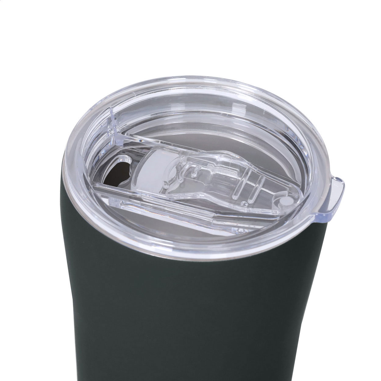Dvoustěnný, nerezový izolovaný termo hrnek s pogumovanou úpravou a víčkem na pití, 350 ml.