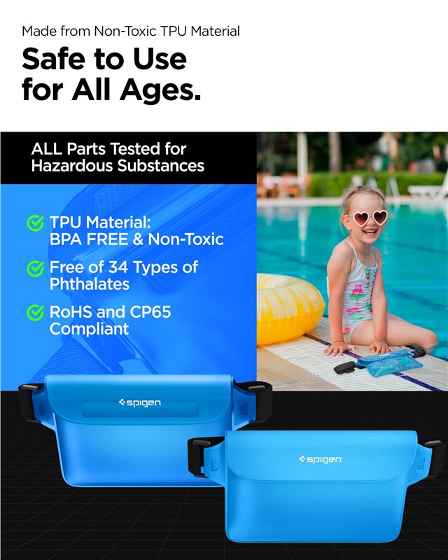 Splňuje certifikaci IPX8 pro bezpečný ponor do 30 metrů a nabízí vynikající úložnou kapacitu pro cestovní doklady i drobné cennosti. Nastavitelný popruh kolem pasu a pevné bezpečnostní zámky zaručují, že obsah zůstane v suchu i při aktivním pohybu ve vlnách.