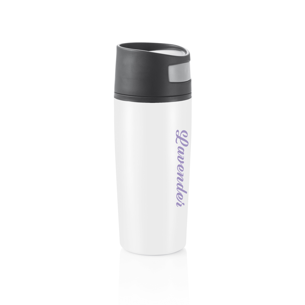 Bílý nerezový cestovní hrnek ESTA v čistém designu přináší maximální komfort při pití oblíbeného latté nebo čaje v autě. Vyznačuje se kontrastním černým PP povlakem a chytře vymyšleným ovládáním jedním stiskem prstu.