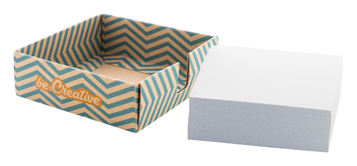 Zásobník na papírové poznámky na zakázku s blokem za 300 listů z recyklovaného papíru (90×90 mm). Cena zahrnuje plnobarevný potisk držáku, nezahrnuje tiskovou přípravu. Min. mn.: 100 ks.
