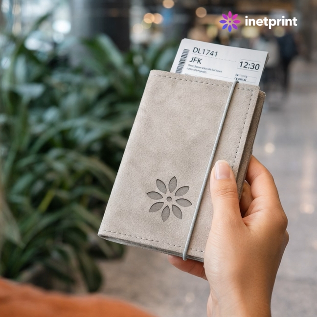 Letenky, pas a všechny potřebné dokumenty můžete mít vždycky po ruce díky praktickému obalu na cestovní doklady. Ten je vyroben z udržitelného materiálu washpaperu. Zdarma s vaším brandingem – gravírováním loga.