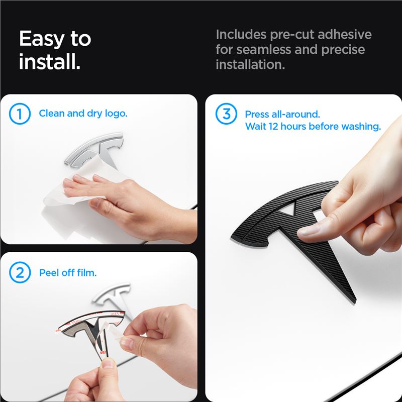 Stylový kryt předního loga Spigen v šedém karbonovém provedení přesně lícuje s tvary Tesly Model 3 2024 a 2025 (Highland). Kvalitní polykarbonátová konstrukce vytváří pevnou bariéru proti poškrábání a UV záření.