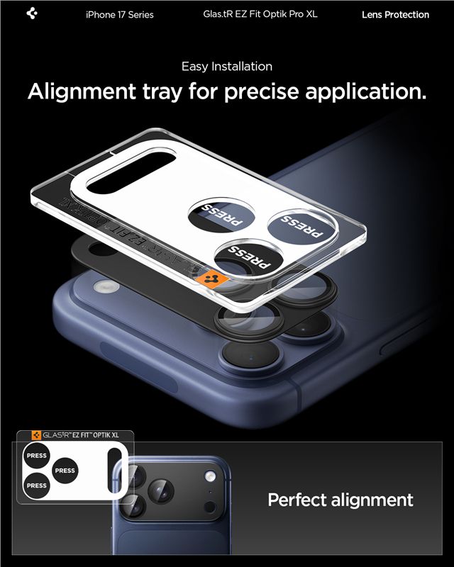 Ochranná fólie na objektiv pro iPhone 17 Pro Max Spigen Glass tR EZ Fit Optik Pro XL 1 Pack - černá