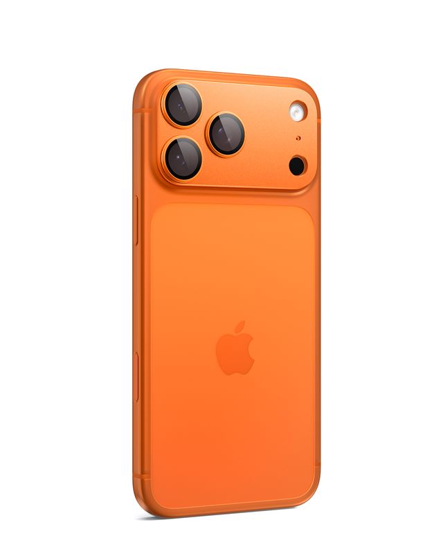 Odolné ochranné sklo Spigen Glass tR EZ Fit Optik Pro XL v oranžové barvě chrání citlivý fotoaparát telefonu iPhone 17 Pro před nárazy a nečistotami. Použitý hlinito-křemičitý materiál vyniká nadstandardní pevností, zatímco precizní výřezy zaručují dokonalé splynutí s designem mobilního zařízení.