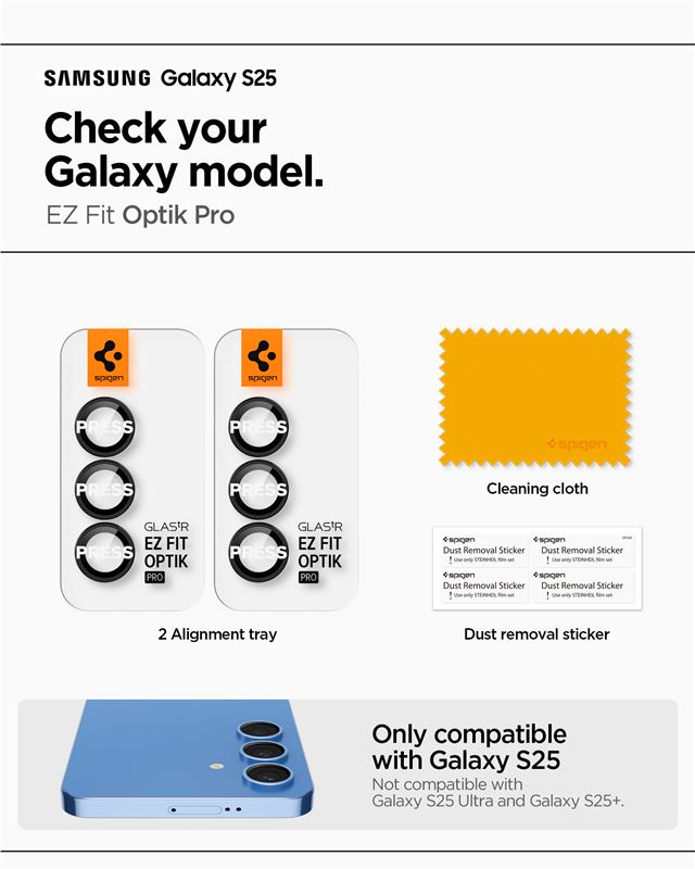 Ochranná fólie na objektiv pro Samsung Galaxy S25 Spigen Glass tR EZ Fit Optik Pro HD 2 Pack - černá