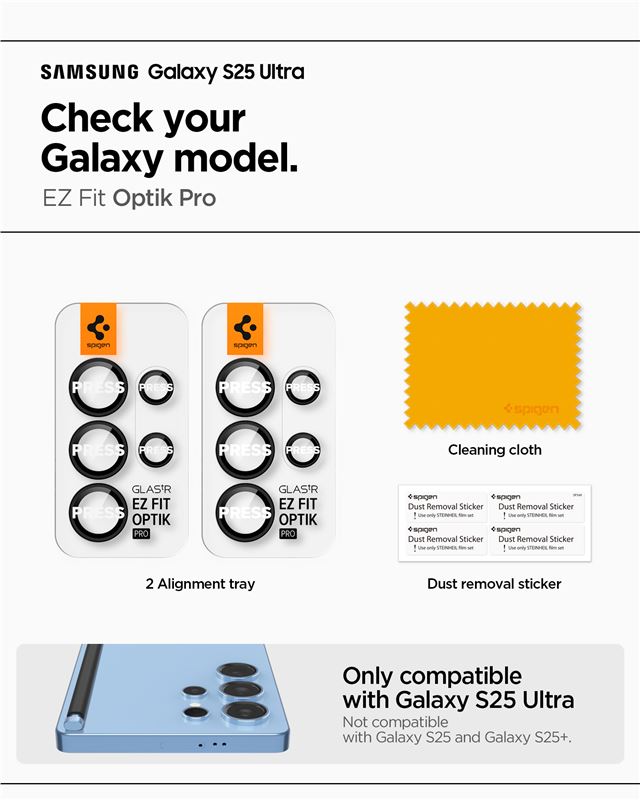 Ochranná fólie na objektiv pro Samsung Galaxy S25 Ultra Spigen Glass tR EZ Fit Optik Pro HD 2 Pack - černá