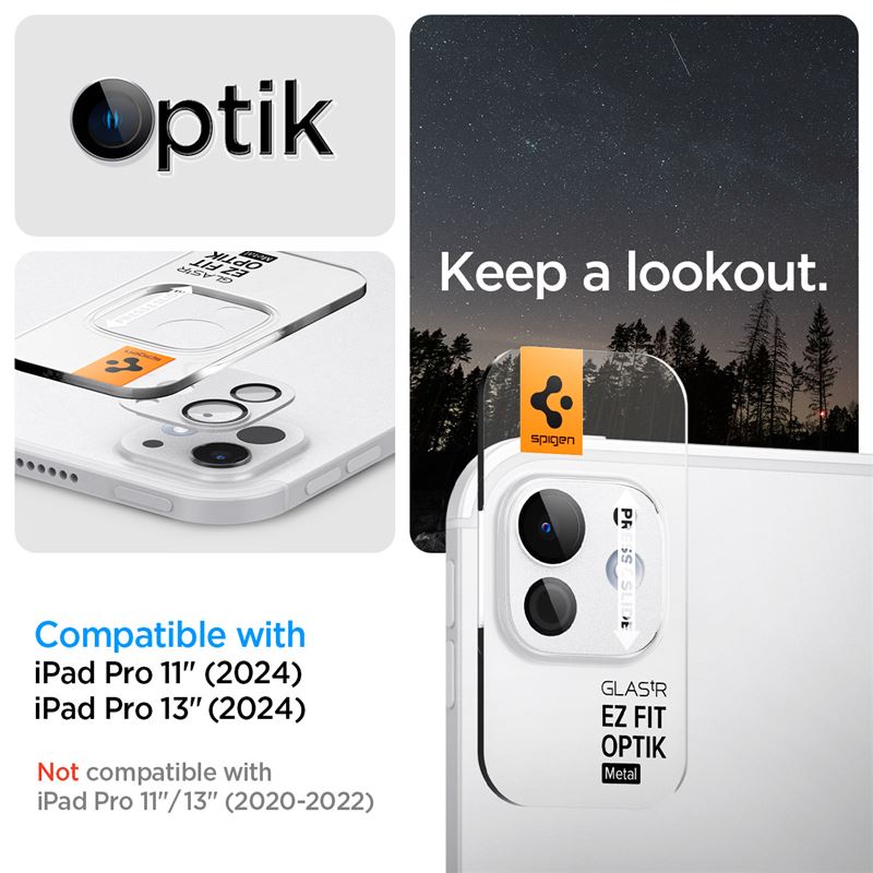 Ochranné sklo na objektiv pro iPad Spigen Glass tR EZ Fit Optik Metal 1 Pack, iPad Pro 13" 2024 / iPad Pro 11" 2024 - stříbrná