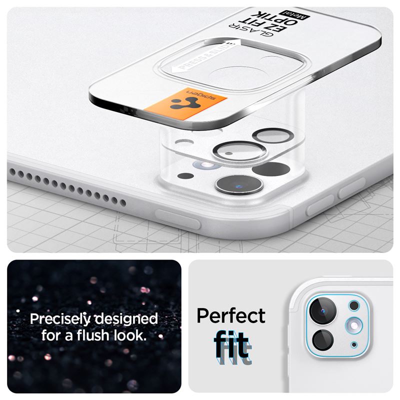 Zjednodušuje proces lepení pomocí systému EZ Fit, který zaručuje přesné usazení na první pokus bez nutnosti složité manipulace. Povrchová úprava proti otiskům prstů udržuje čočku v čistotě, zatímco stříbrný kovový kroužek vkusně doplňuje design tabletu.