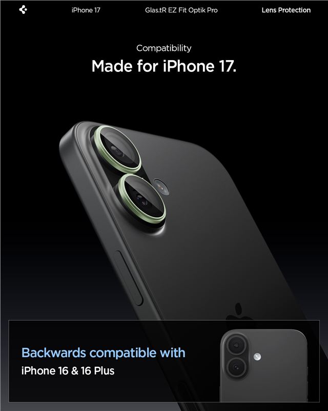 Ochranné sklo na objektiv pro iPhone 17 Spigen Glass tR EZ Fit Optik Pro 2 Pack - zelená