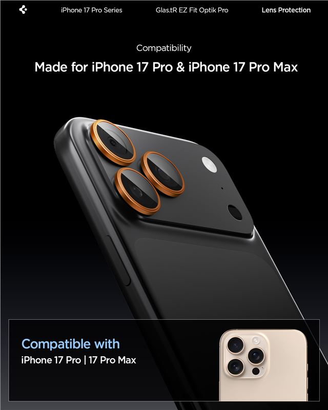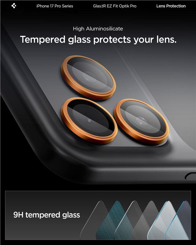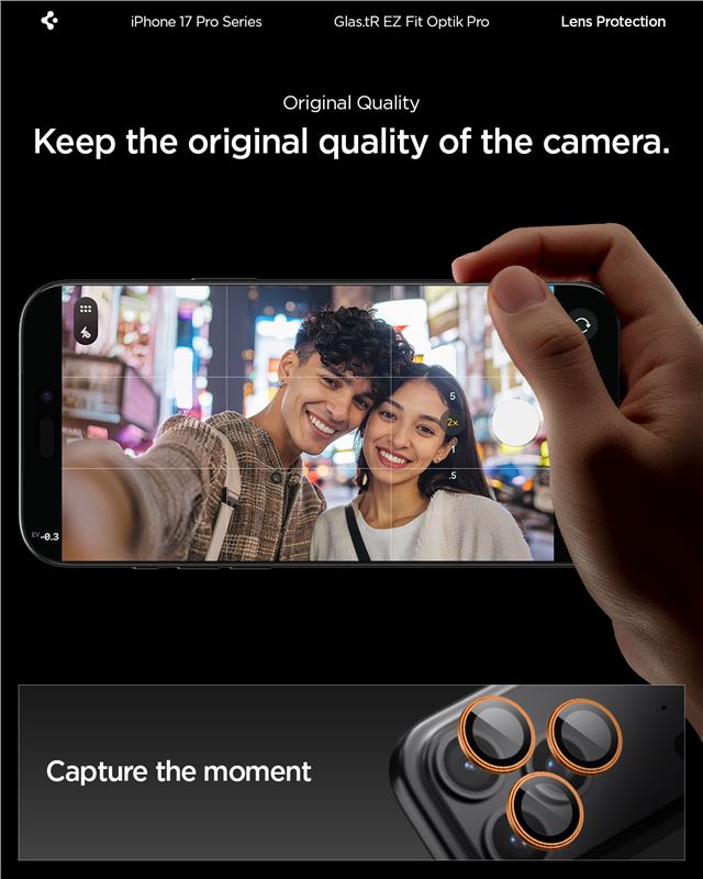 Ochranné sklo na objektiv pro iPhone Spigen Glass tR EZ Fit Optik Pro 2 Pack, iPhone 17/16/15/14 Pro / 17/16/15/14 Pro Max - oranžová