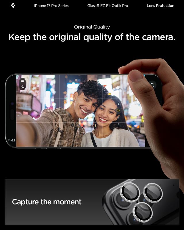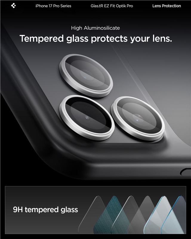 Ochranné sklo na objektiv pro iPhone Spigen Glass tR EZ Fit Optik Pro 2 Pack, iPhone 17/16/15/14 Pro / 17/16/15/14 Pro Max - stříbrná