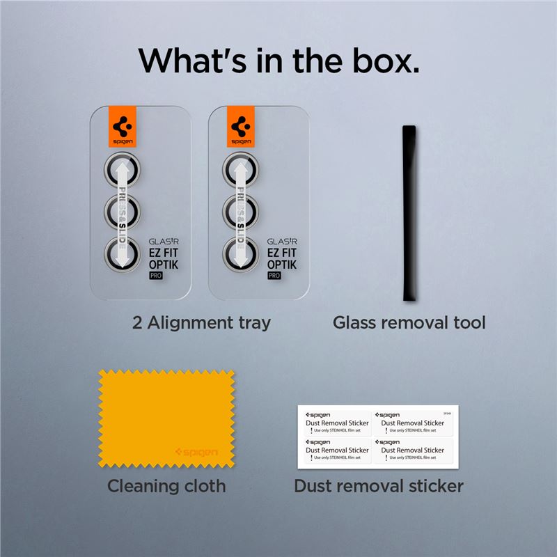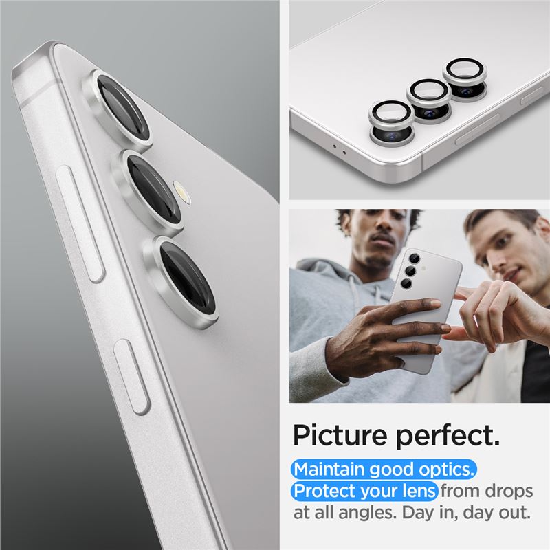Sada dvou kusů tvrzeného skla Spigen Glass tR EZ Fit Optik Pro v šedé variantě je přesně vyvinuta pro ochranu fotoaparátu na Samsung Galaxy S24+. Materiál s vysokou tvrdostí 9H působí jako neviditelné brnění, které čočky chrání před tvrdými dopady i běžným opotřebením.
