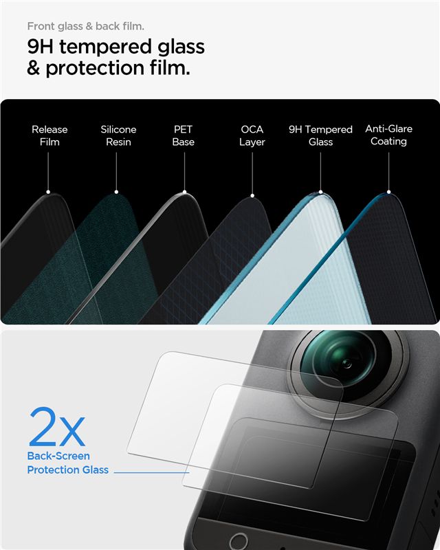 Využívá antireflexní vrstvu, která zlepšuje čitelnost obrazu na přímém slunci a zároveň nesnižuje citlivost dotykového ovládání. Silná přilnavost zamezuje nechtěnému odlepování i při extrémních pohybech kamery.