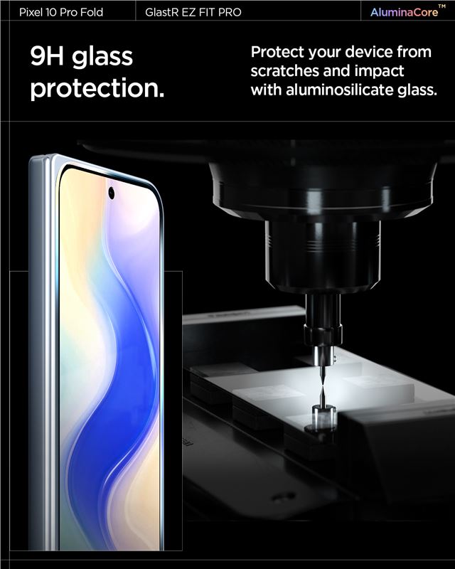Dvojice tvrzených skel pro vnější displej telefonu Google Pixel 10 Pro Fold garantuje vysokou úroveň ochrany proti poškrábání s tvrdostí 9H. Automatický vyrovnávací rámeček zajišťuje bleskovou a přesnou aplikaci bez nutnosti manuálního opravování polohy.