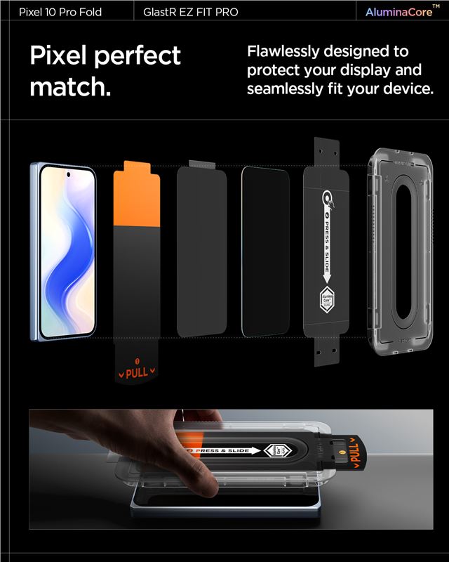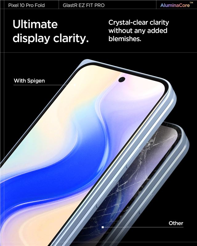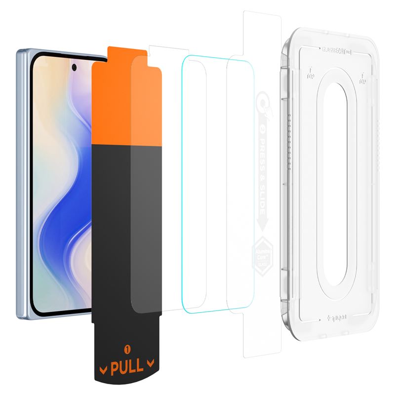 Zachovává původní dotykovou odezvu i ostrost obrazu a využívá oleofobní úpravu k efektivnímu potlačení otisků prstů. Tvar skla je navržen tak, aby nezasahoval do konstrukce ohebného kloubu a zůstal plně kompatibilní s kryty Spigen.