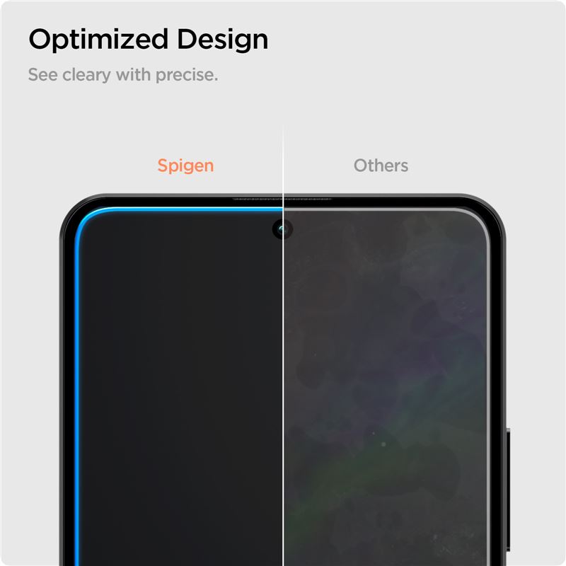 Eliminuje nežádoucí šmouhy a otisky prstů pomocí oleofobního povrchu. Konstrukce zohledňuje kompatibilitu s kryty Spigen, což umožňuje zajistit kompletní ochranu telefonu bez rizika odlepování hran.