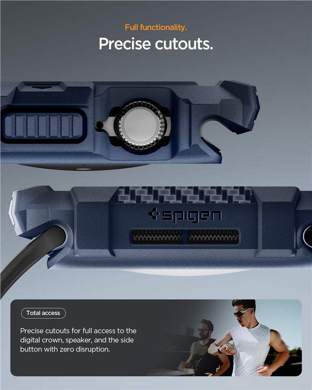 Zabraňuje poškození displeje vyvýšeným rámečkem a nebrání přístupu k tlačítkům ani nabíjení. Matný finiš eliminuje otisky prstů a podtrhuje moderní design hodinek.